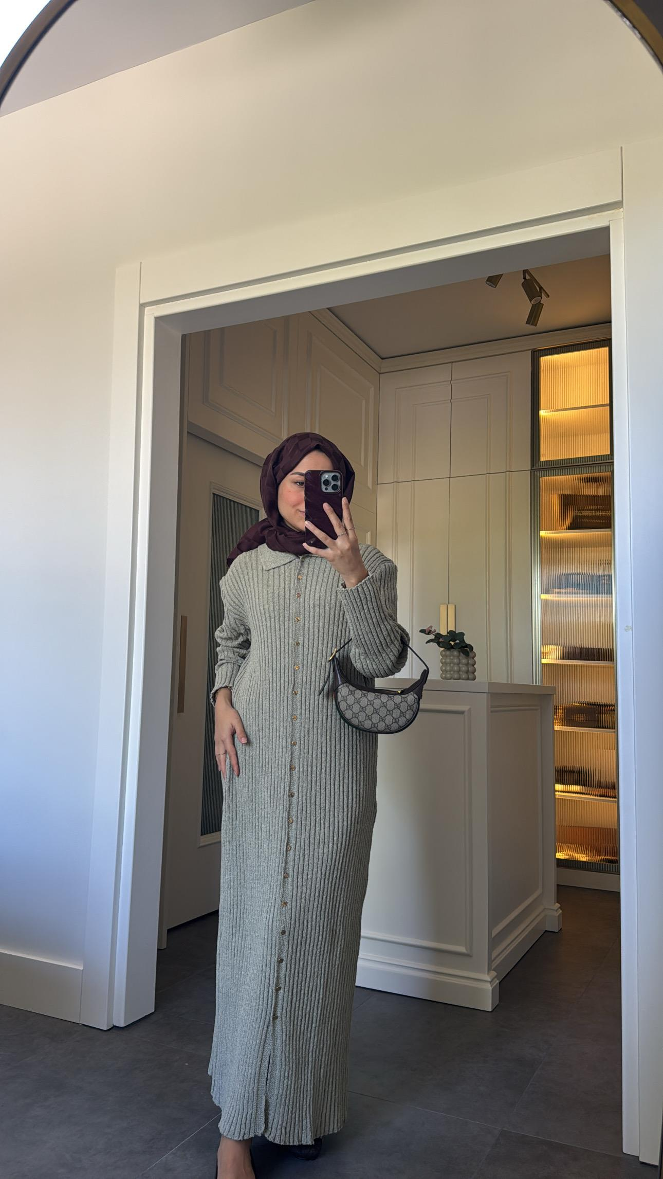 Gold Düğmeli Triko Elbise Çağla (EK156)