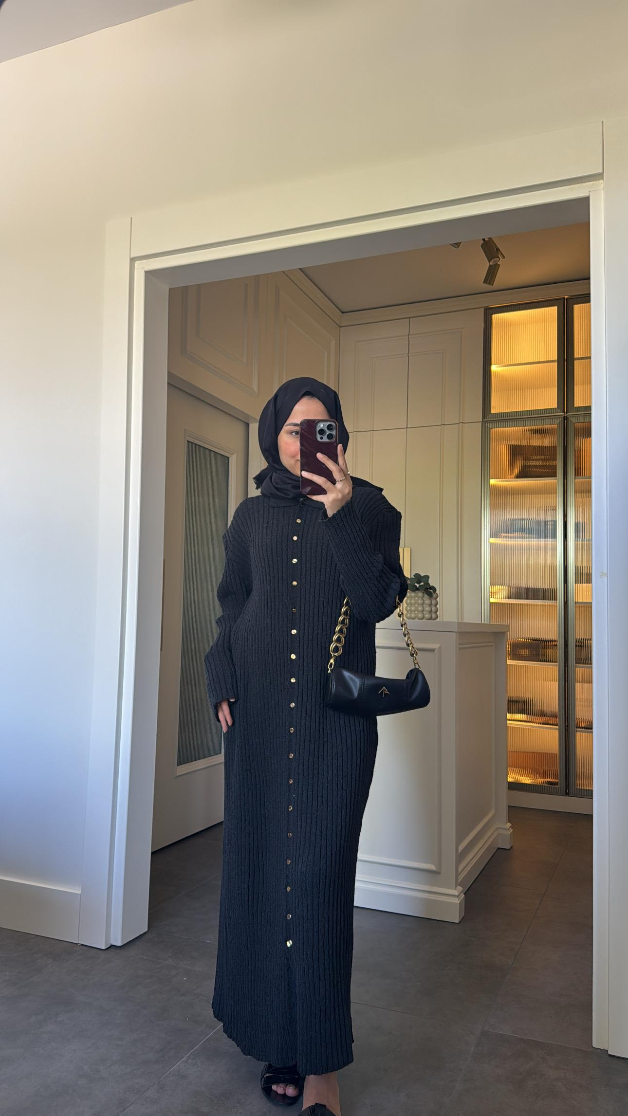 Gold Düğmeli Triko Elbise Siyah (EK156)