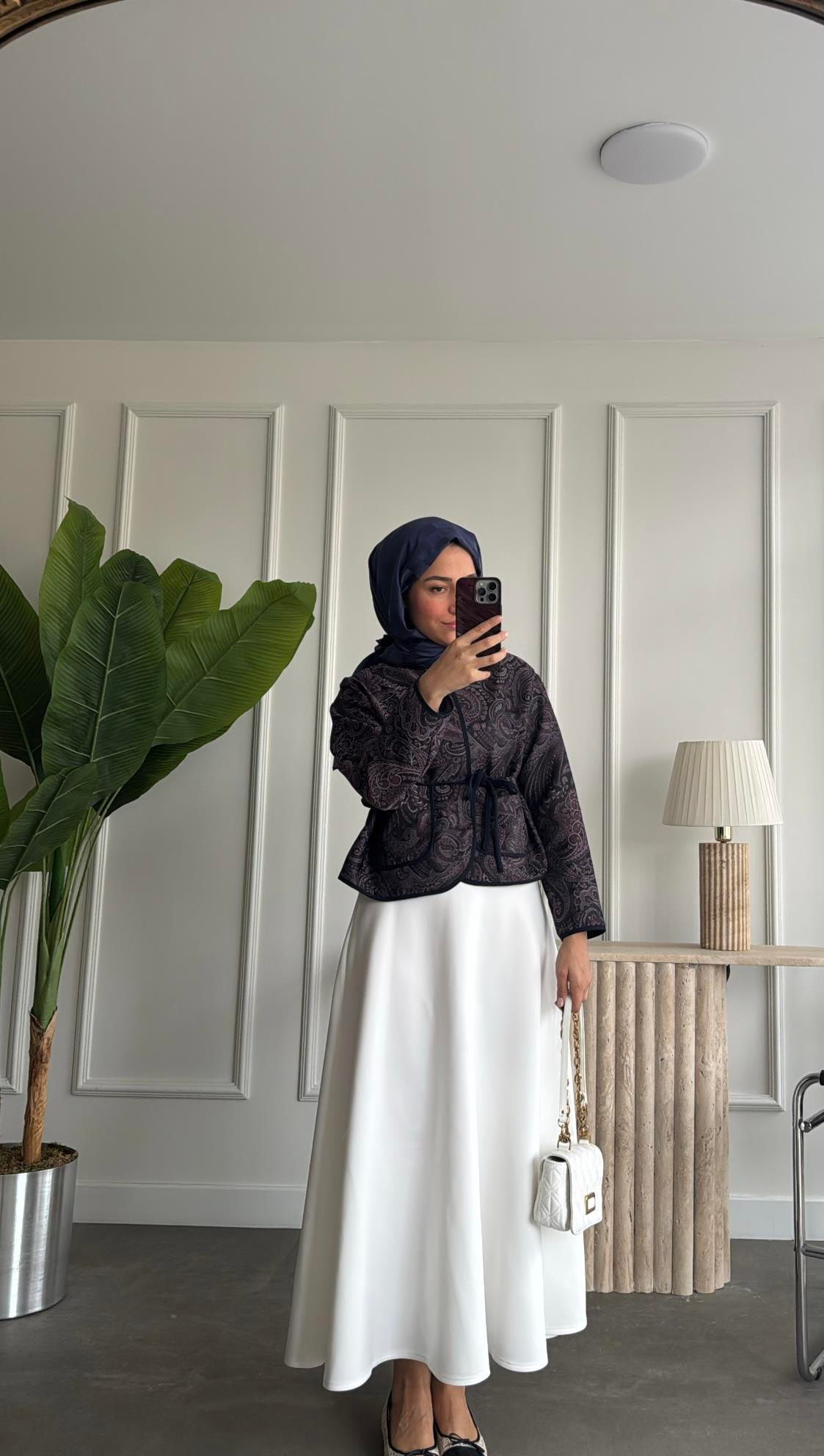 • 1-2 beden şeklindedir. 1 beden 36-38 2 beden 40-42 bedene uyumludur.