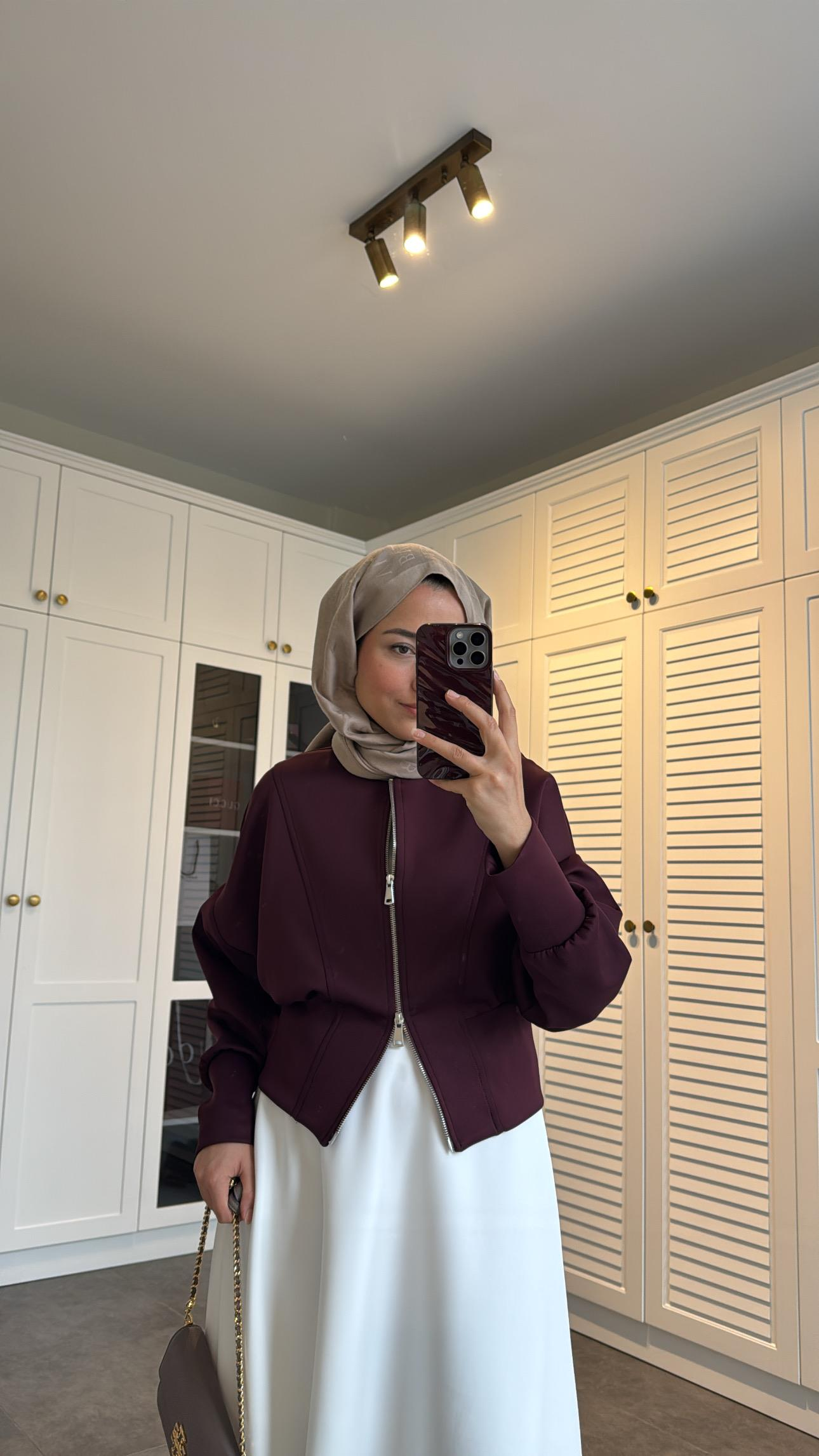 Fermuarlı Scuba Ceket Mürdüm (6969)
