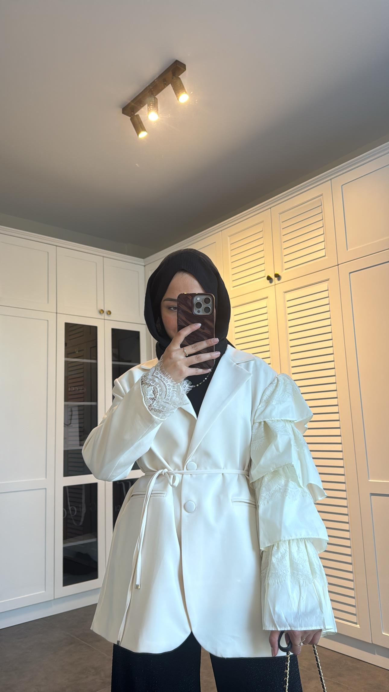 Louie Kol Dantelli Double Ceket Ekru (6969)