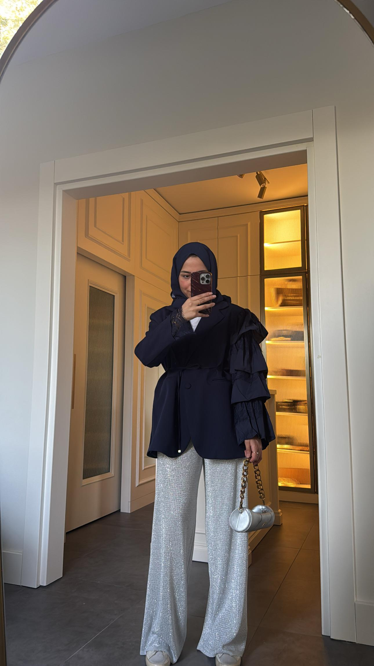 Louie Kol Dantelli Double Ceket Lacivert (6969)
