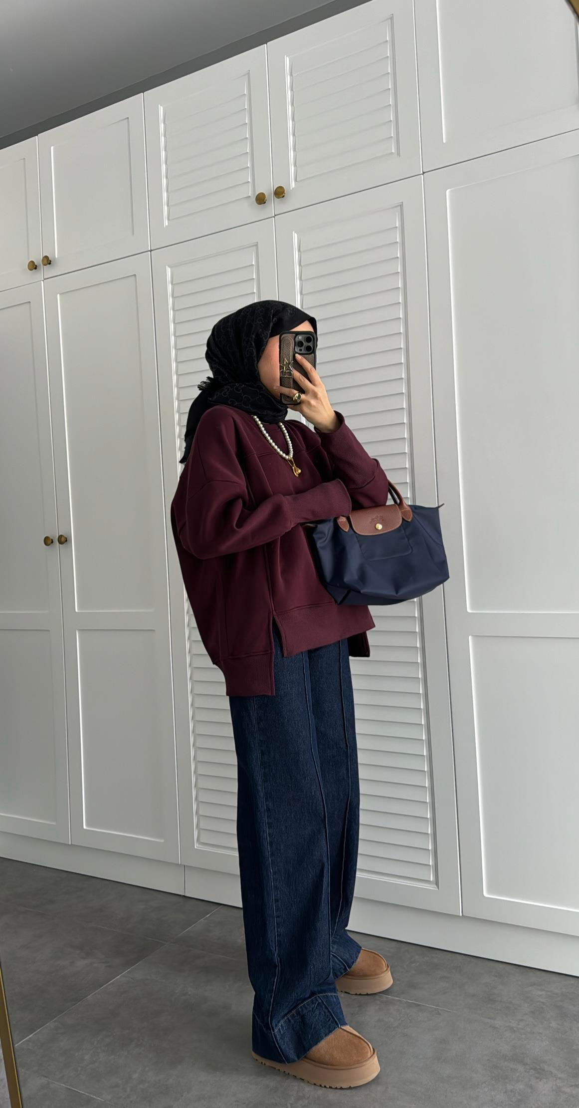 Parmak Geçme Detaylı Premium Sweatshirt Bordo (2525)