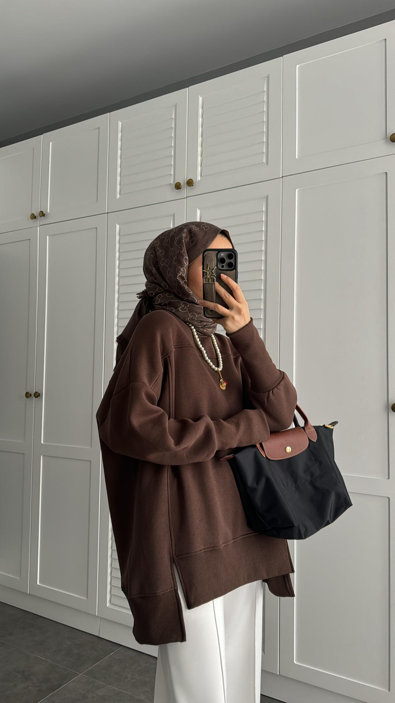 Parmak Geçme Detaylı Premium Sweatshirt Kahve (2525)