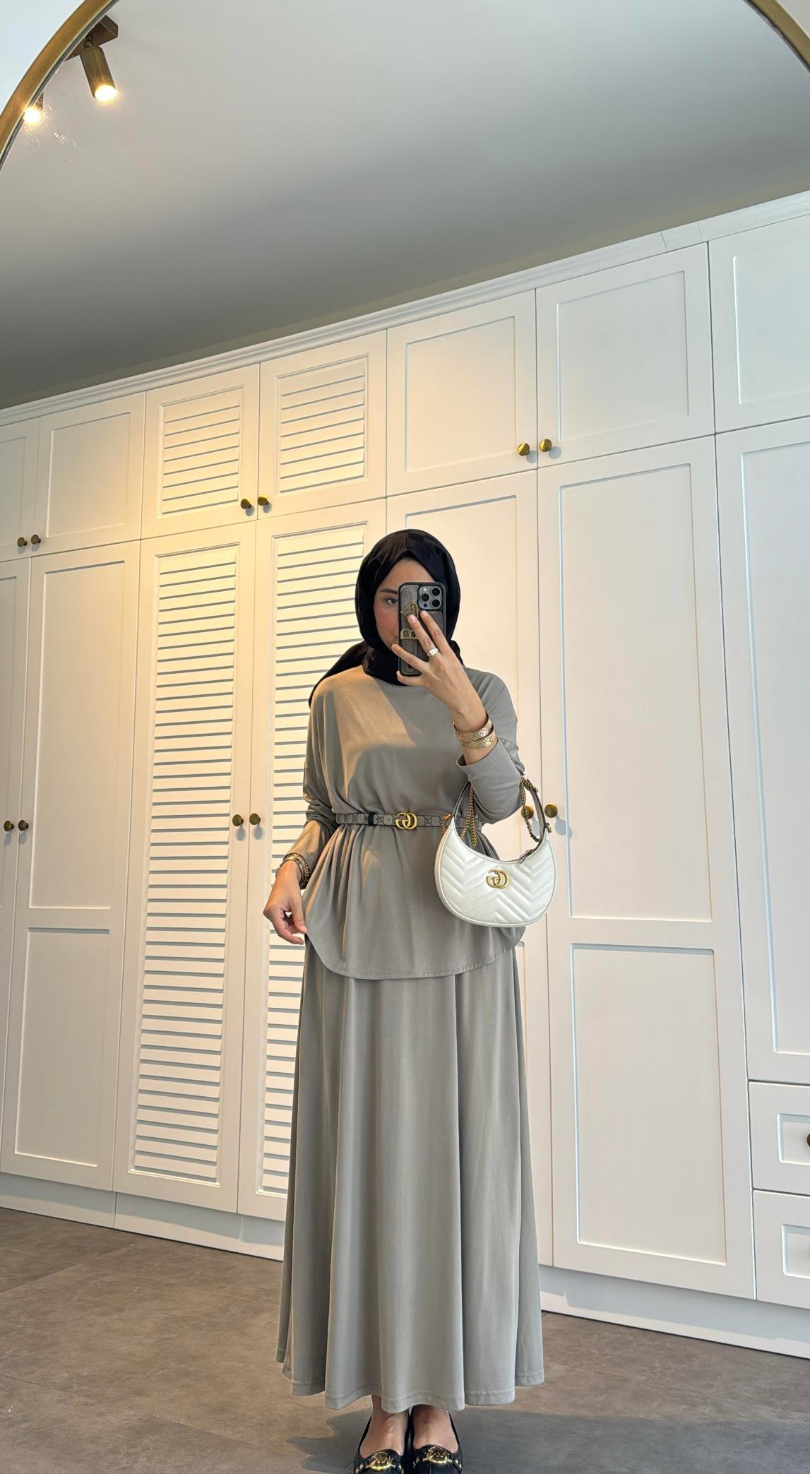 Etek beli lastiklidir. Etek boyu 90 cmdir