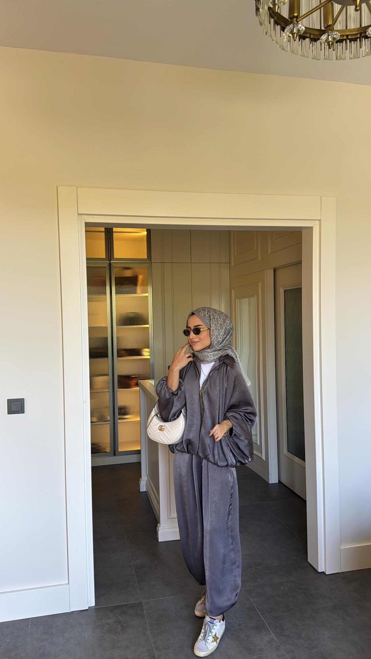 Saten Bomber Ceket Pantolon Takım (TR3439)