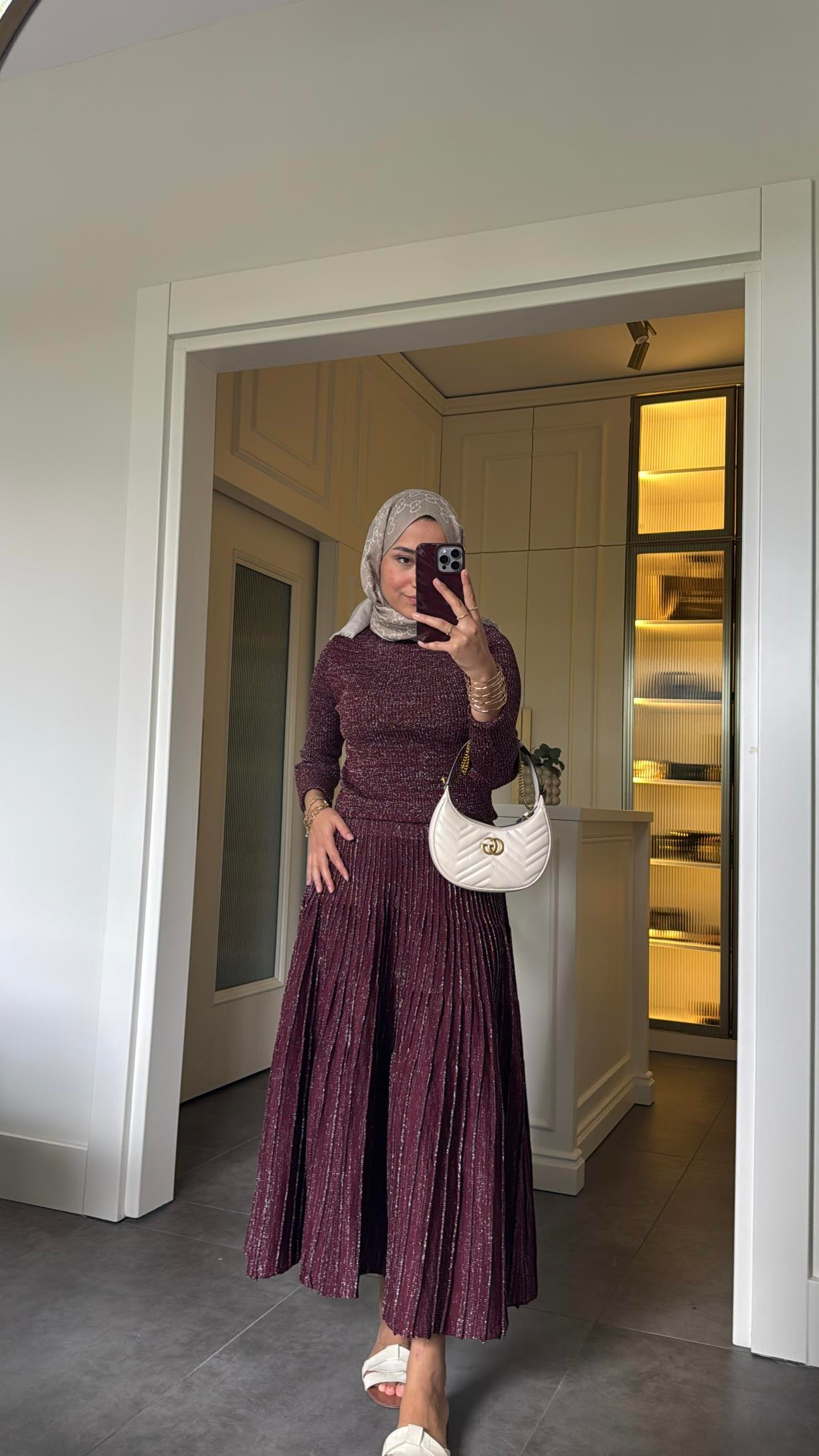 Tasarım Simli Elbise Bordo
