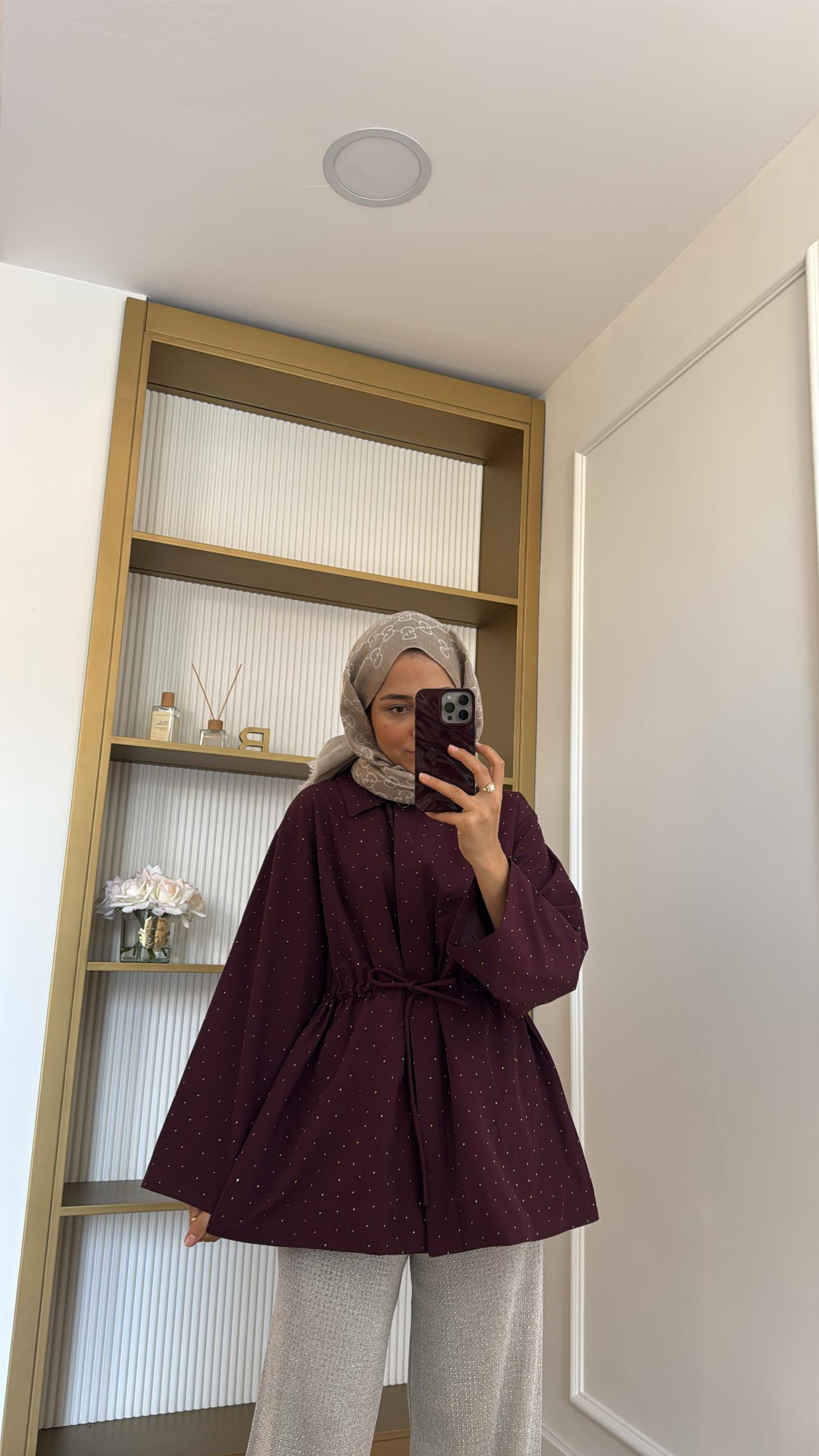 Taşlı Kısa Trenç Bordo