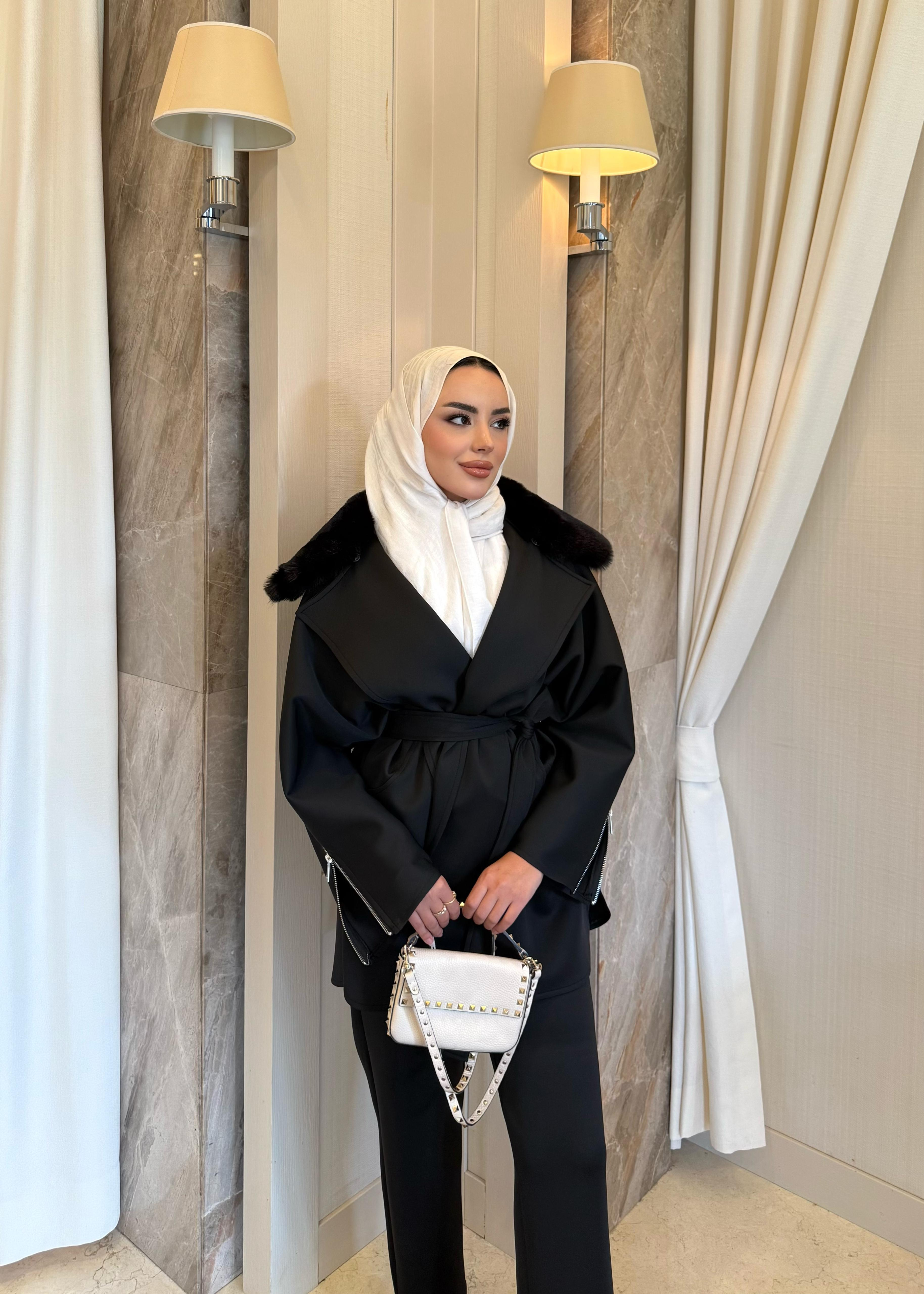 Yakası Kürklü Scuba Takım Siyah (858528)